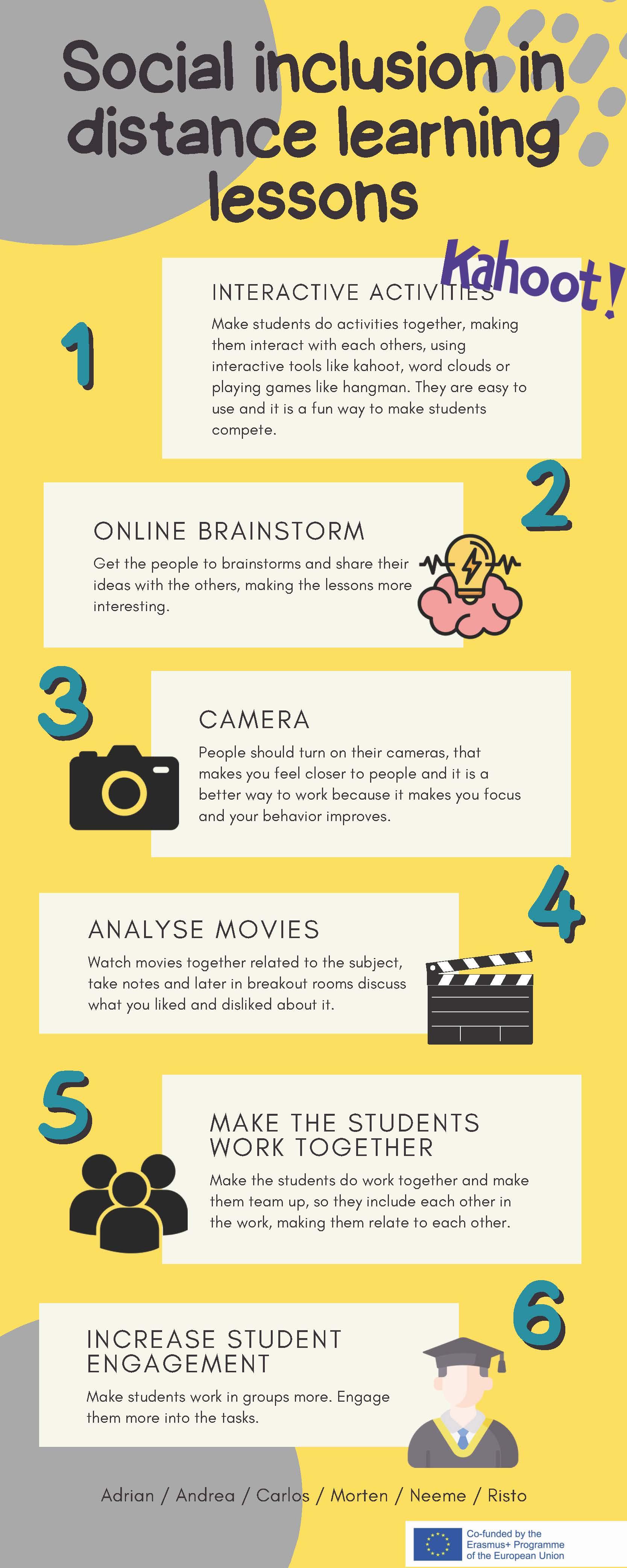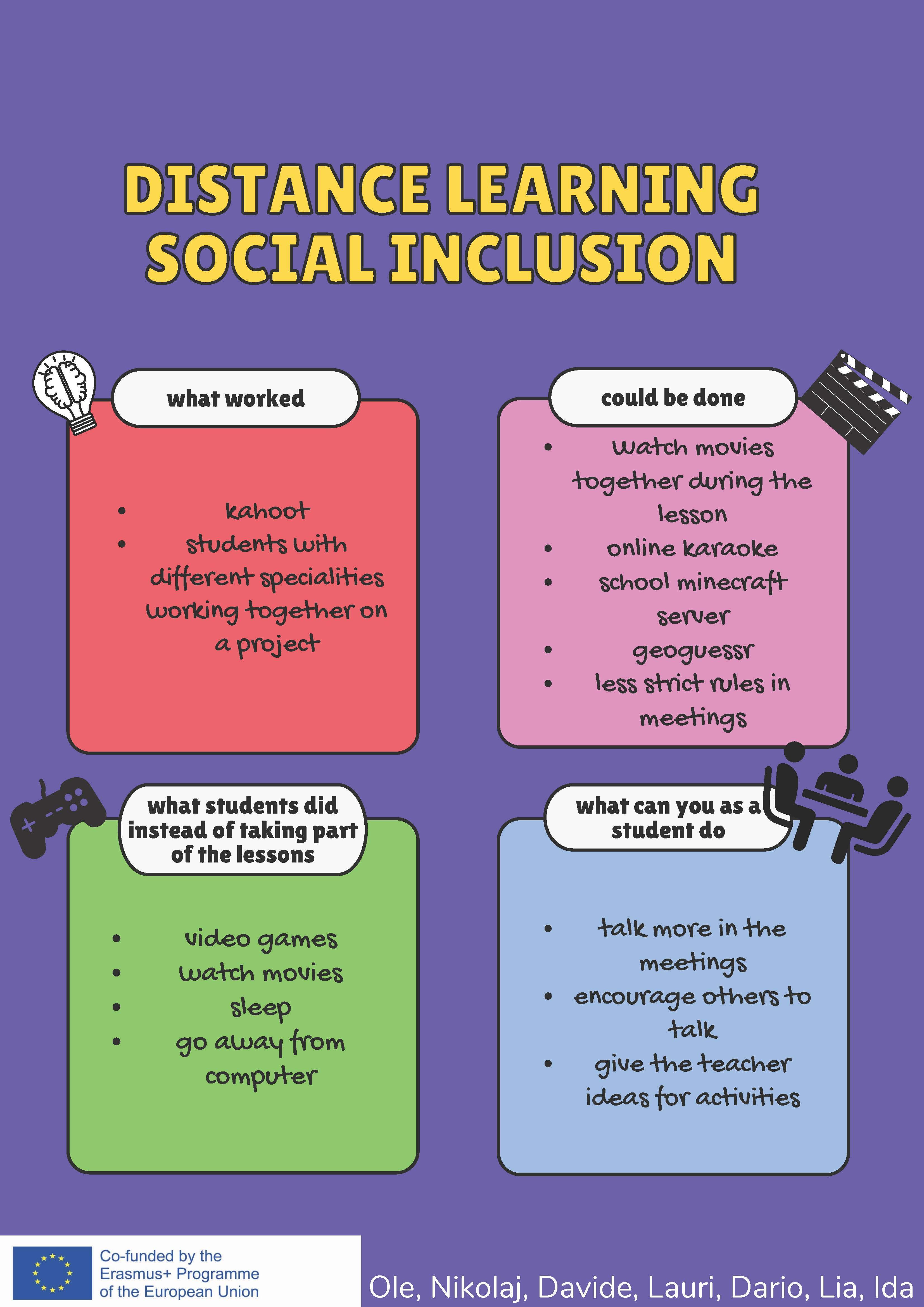 24.-27.10.2022 õpilaste koostööseminar Rakvere Ametikooli: õpilased Taanist, Norrast, Itaaliast, Hispaaniast ja Eestist vahetasid kogemusi distantsõppe osas ning andsid soovitusi, kuidas e-õpe tulevikus võiks edukam olla.