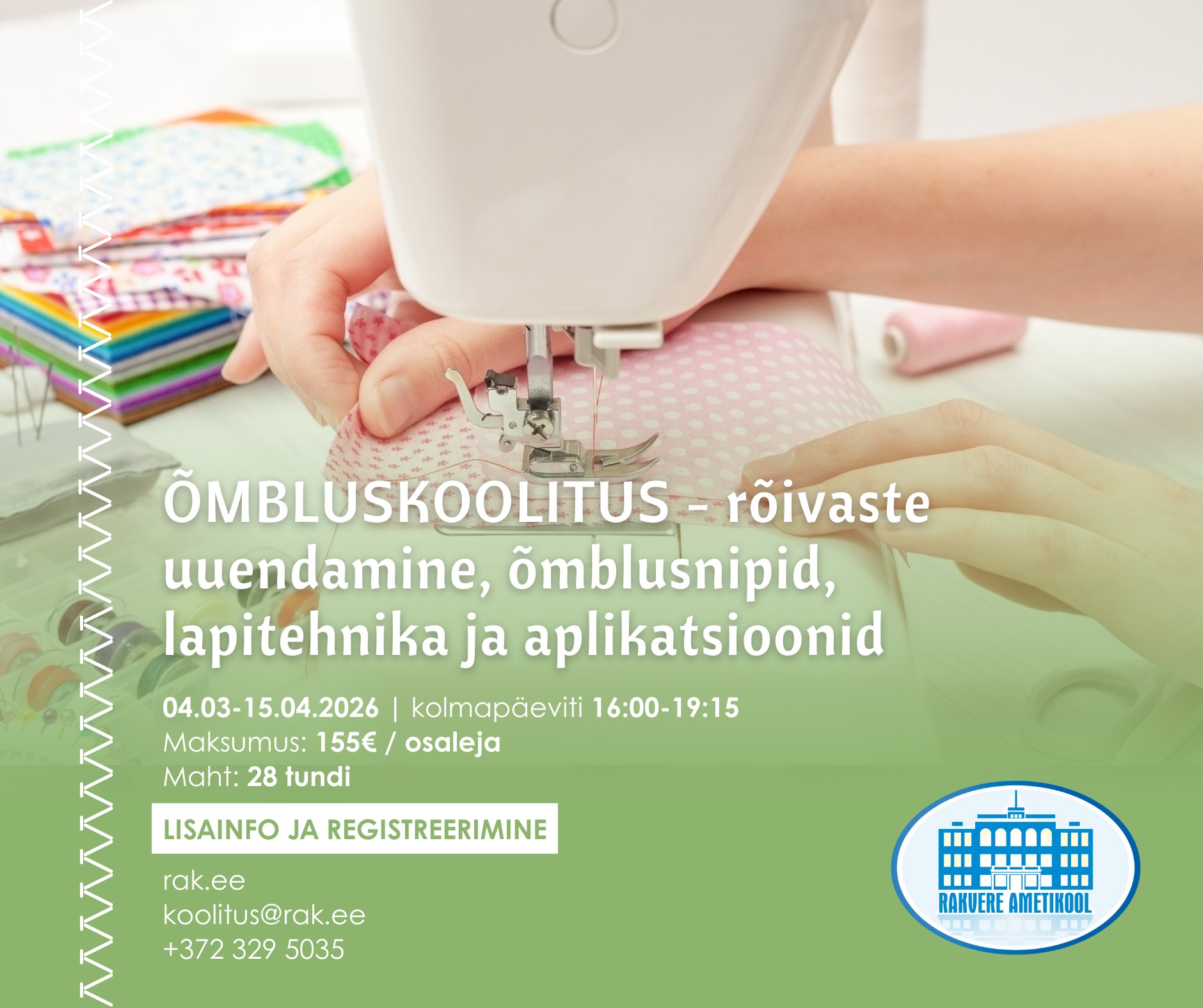 Meie populaarne õmbluskoolitus algab taas - pane end kirja enne kui kohad täis saavad!