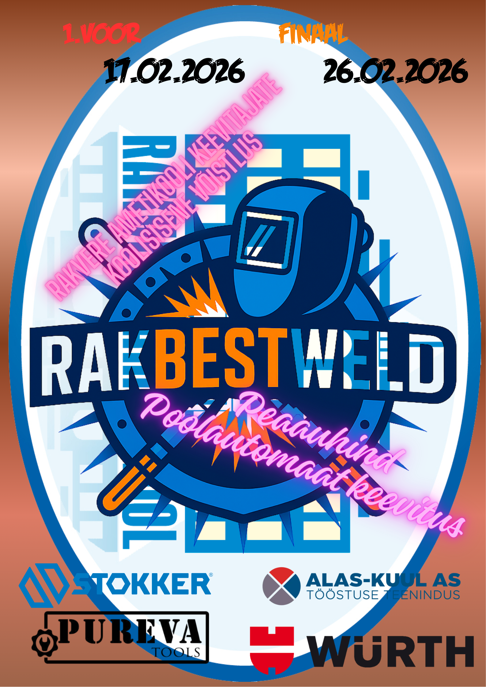 Rakvere Ametikoolis toimub 17. veebruaril 2026 RAKBESTWELD 1. voor ning 26. veebruaril 2026 finaal, kus selgub kooli parim keevitaja.