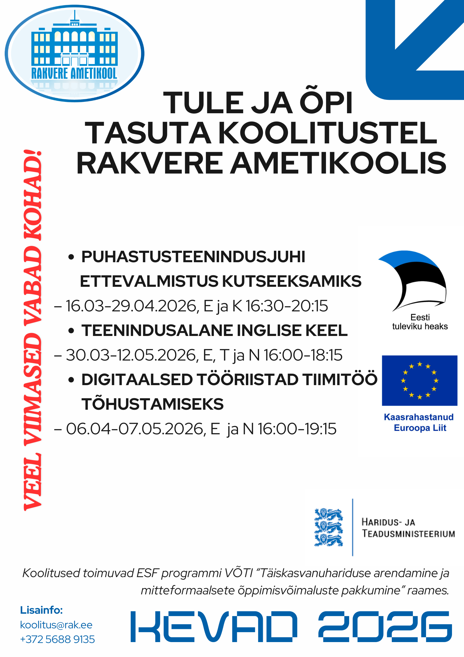 e-post: koolitus@rak.ee, tel (+372) 5688 9135